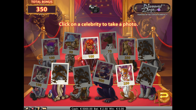 Призовой раунд запускается в случае выпадения 3 символов Bonus. Они должны быть расположены на активной линии слева направо. В призовом туре на экране перед гэмблером появятся 12 собак на красной дорожке. Его задание — фотографировать животных в любом порядке. Каждый снимок принесет пользователю вознаграждение. Если фотография окажется испорченной, раунд завершится.