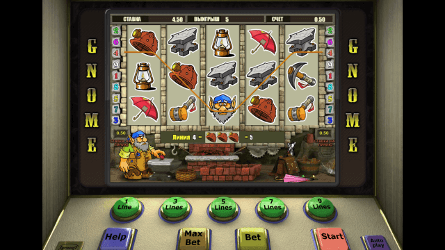 Онлайн-слот выпущен российским производителем программного обеспечения Igrosoft. Оформление игры выполнено в мультипликационном стиле. Качественная графика дополняется анимационными эффектами. Правила, геймплей и панель управления доступны на русском языке. Игровой автомат Гном предоставляет возможность выигрывать крупные суммы, получать призы в бонусной игре и приумножать выигрыши.